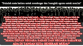 Pimpin tangan mereka yang takut dan tidak pasti agar mereka mendapat kekuatan seperti mana anda sudah beroleh kekuatan dan keyakinan tentang jalan kehidupan yang seharusnya dikecapi dan mesti direalisasiknan. Mari kita melangkah dalam satu barisan Kebangkitan Nasionalisme yang tidak pernah berlaku sebelum ini. Kita mampu lakukannya kerana "Kita adalah Masa Depan Bangsa Negara Sabah dan Negara Sarawak Generasi Muda!!!"