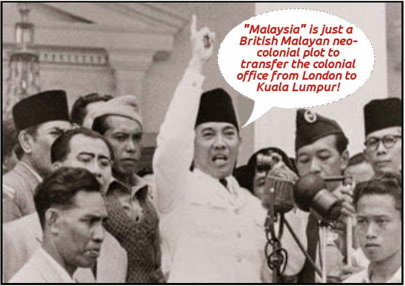 Ibarat "keluar mulut harimau, masuk mulut buaya".Sinonim dengan perumpamaan ini begitulah hal yang terjadi kepada Negara Sabah dan Negara Sarawak. Pada tahun 1962-1966 telah berlaku satu Perang Konfrontasi diantara Indonesia dan "persekutuan malaysia". Ia diketuai oleh Sukarno yang menentang penubuhan ""persekutuan malaysia". Beliau menyatakan bahawa "pembentukan persekutuan malaysia merupakan satu bentuk penjajahan zaman moden."